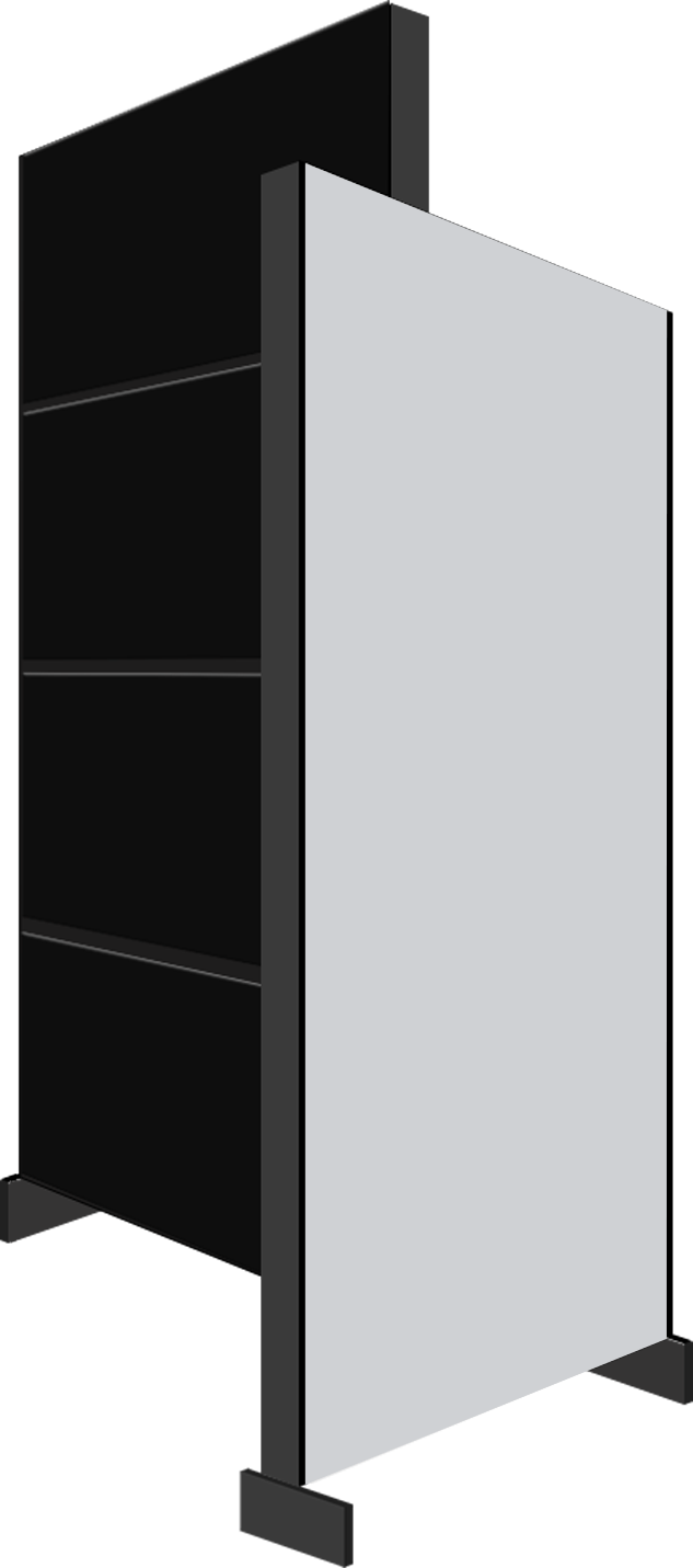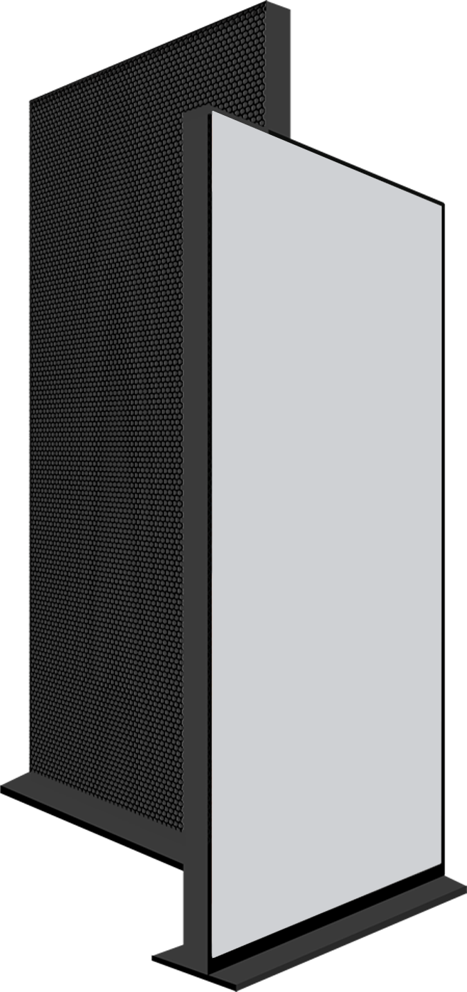 Il Totem standard è composto da uno ledwall con base autoportante a libera installazione. Può ospiare soluzioni con ledwall con orientamento orizzontale o verticale. Questa soluzione è ideale per gli allestimenti retrovetrina poichè garantisce la visibilità dei contenuti in tutta la superficie dei Ledwall.