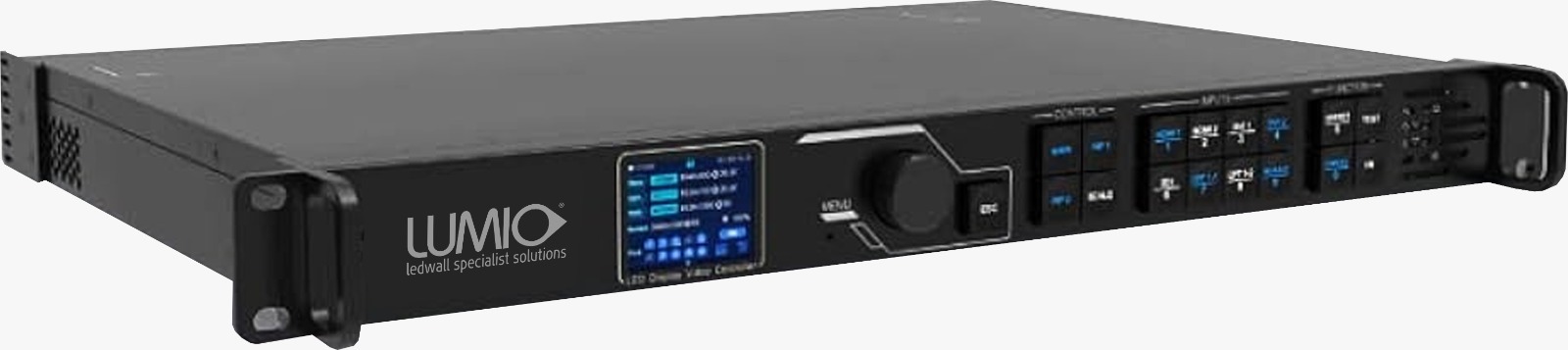 Grazie all’interfaccia touchscreen con display LCD retroilluminato da 3,5″, è possibile selezionare facilmente la sorgente video, trasmettere contenuti in tempo reale e regolare parametri fondamentali come luminosità, contrasto, gamma e temperatura del colore, ottimizzando la resa visiva dei Ledwall Lumio in ogni contesto applicativo.